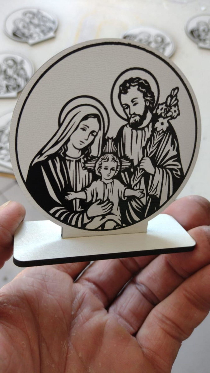 Este enfeite de mesa da Sagrada Família não é apenas um item decorativo; é um lembrete diário de proteção e humildade. Perfeito para abençoar o ambiente de trabalho ou o altar da família.